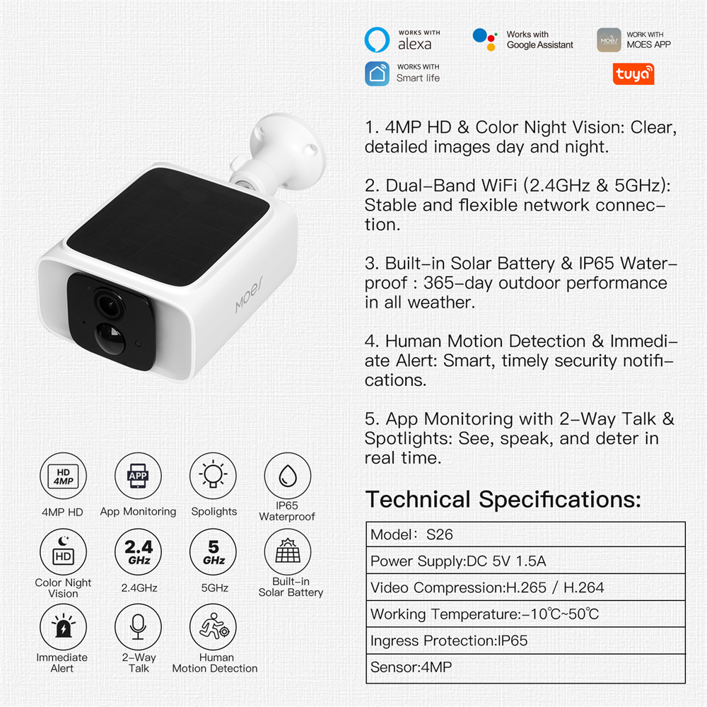 MOES WCM-S26 — це ідеальний вибір для тих, хто шукає автономну камеру без дротів із мінімальним обслуговуванням та максимальним функціоналом.