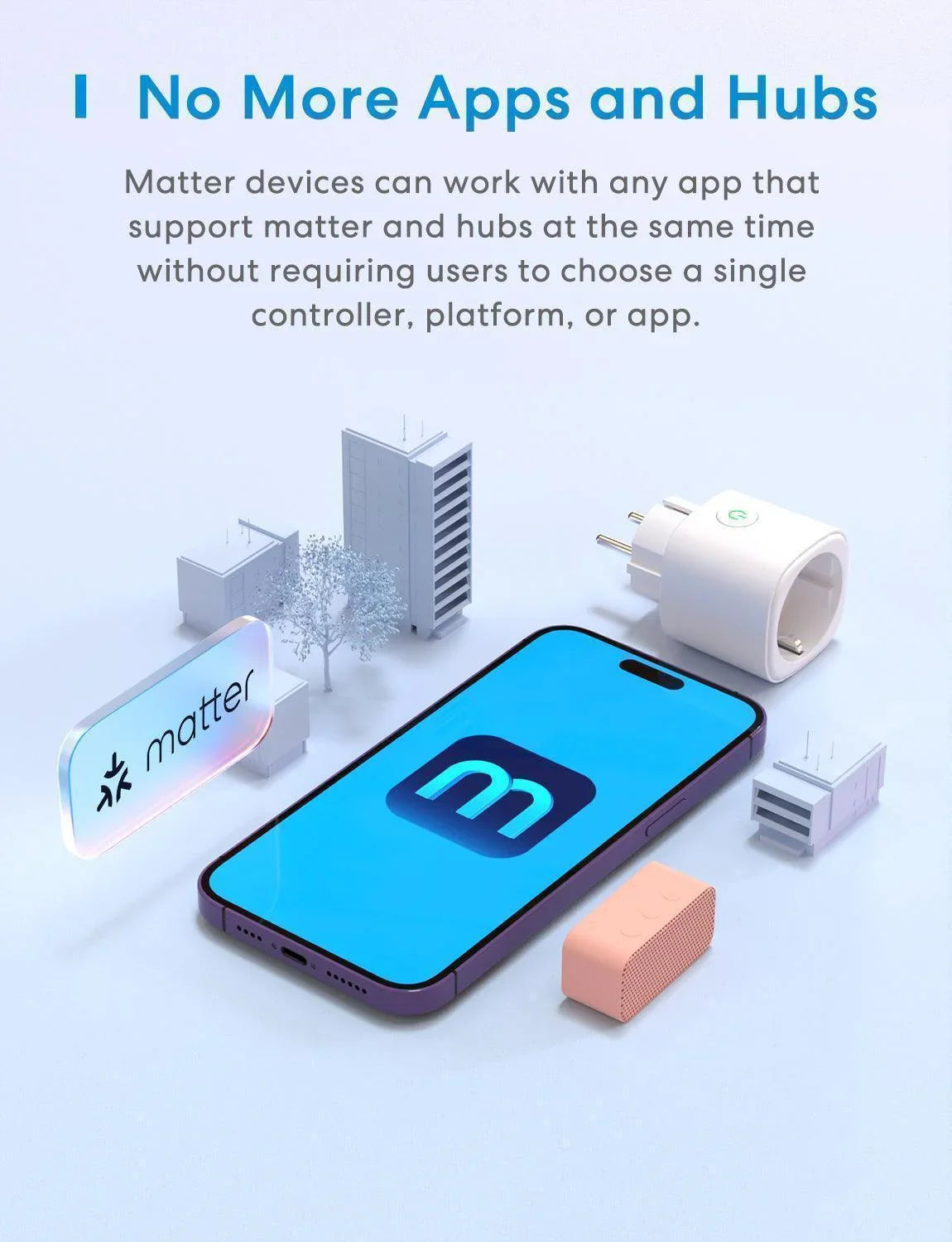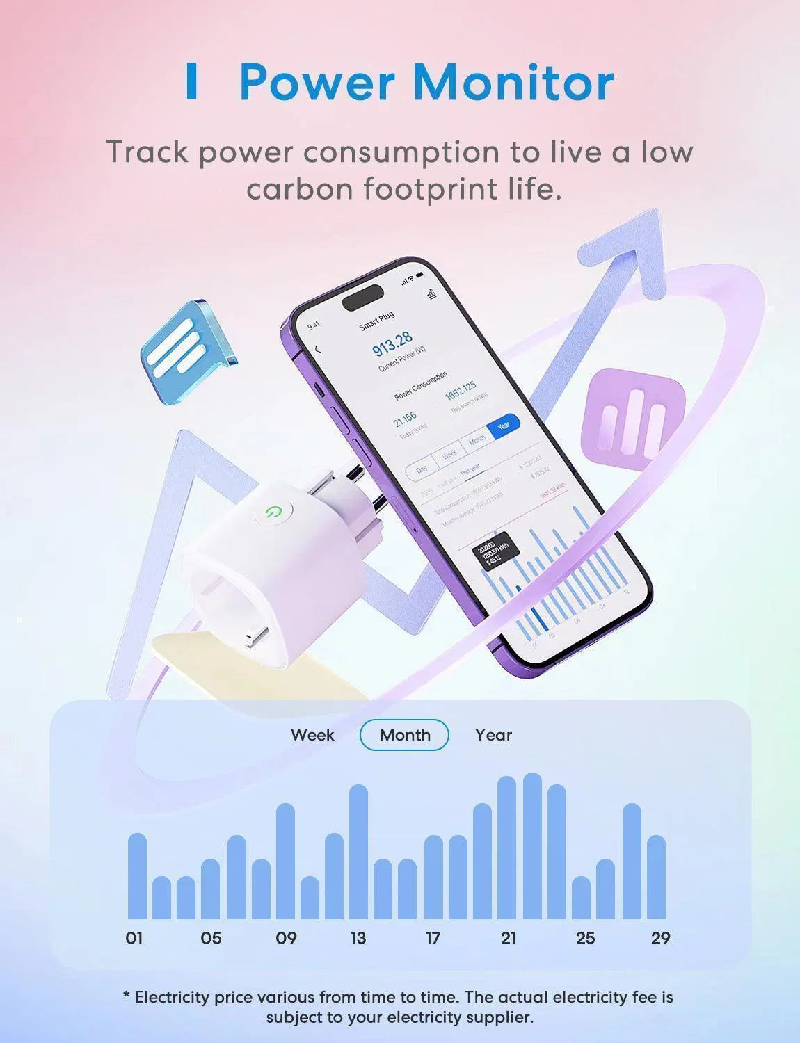 Розумна Wi-Fi розетка Meross MSS315MA-EU Matter моніторинг електроенергії Smart Plug Energy Monitor