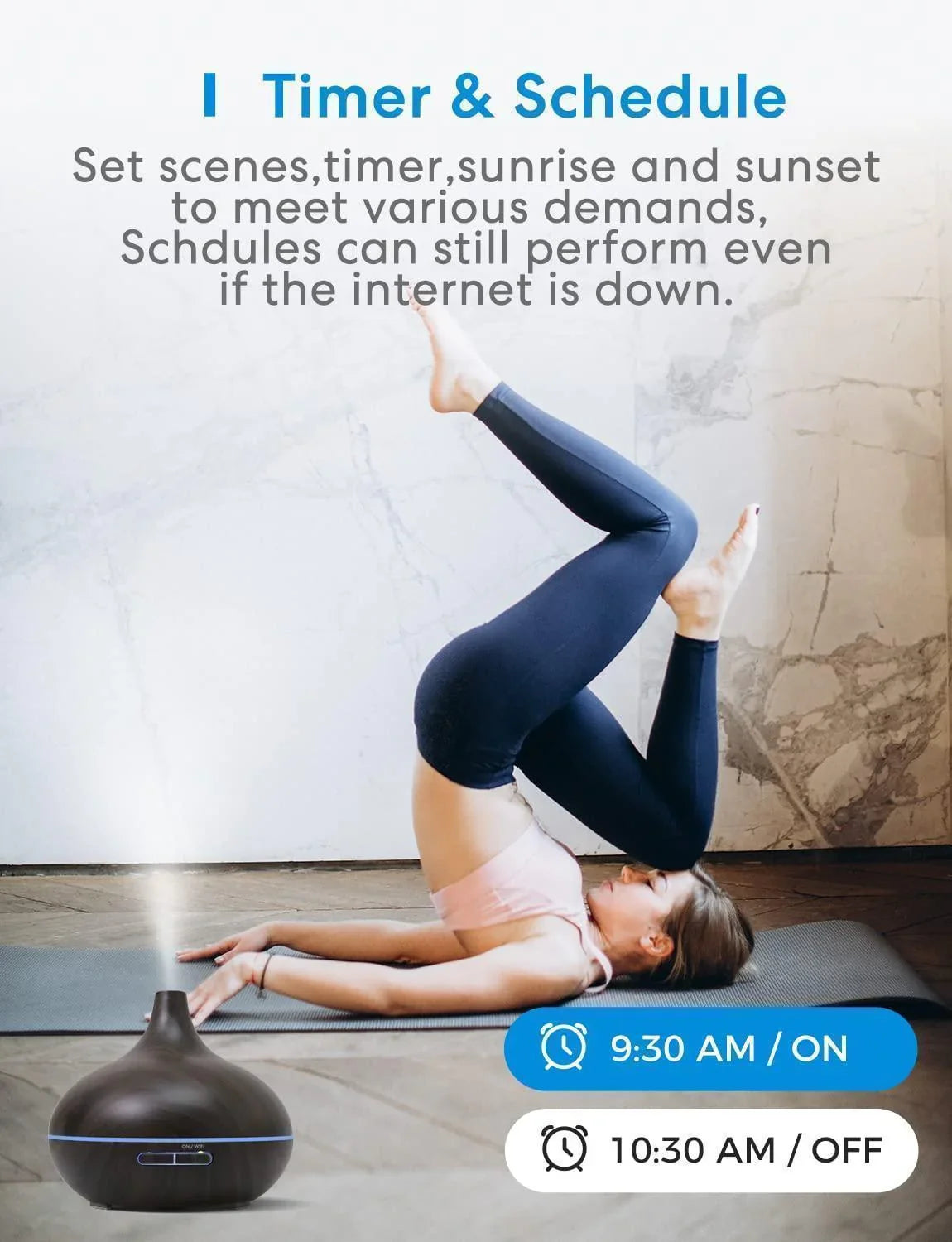Ультразвуковий дифузор Meross Wi-Fi можна запрограмувати на певний час роботи протягом дня або на певні дні тижня.🟠